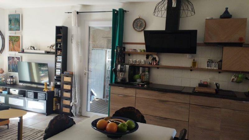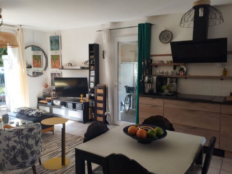 Elle est composée: patio vitré, entrée sur séjour/ salon, cuisine aménagée et équipée, une chambre, salle d'eau ( douche iltalienne) avec wc, loggia vitrée, terrasse ombragée.